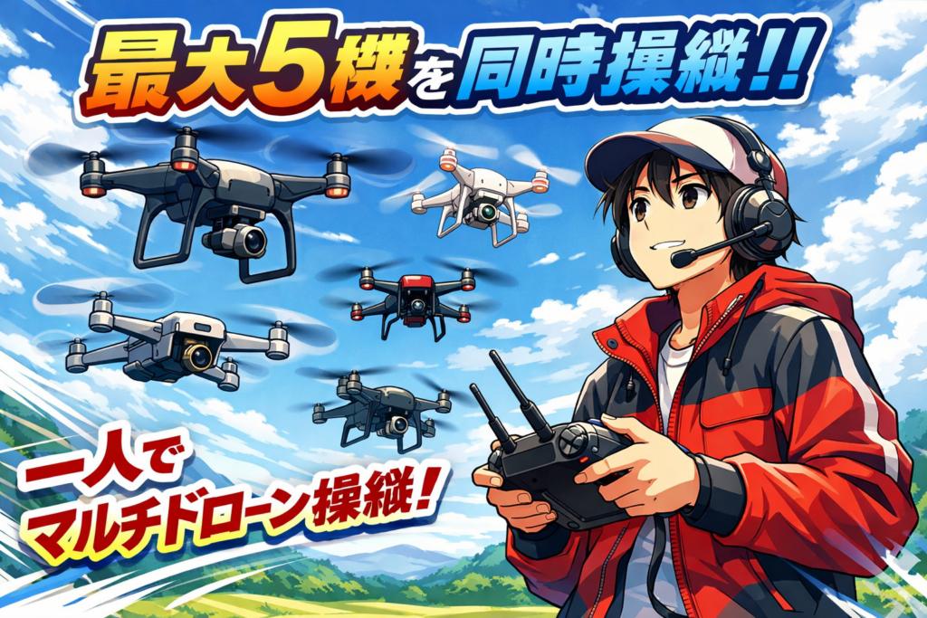 - 機体比率:操縦者1人に対して無人航空機5機(1:5)までの飛行を対象とします。
