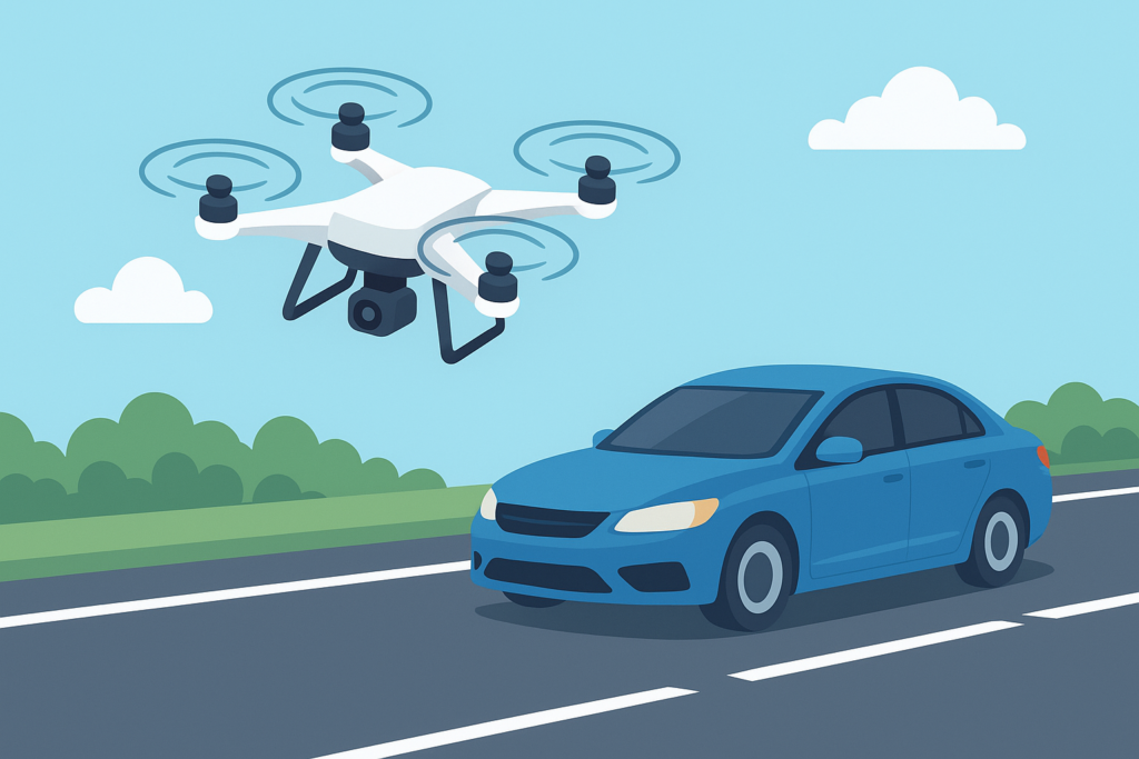 レベル3.5飛行では、機上カメラなどにより操縦者らの安全管理手段を満たすことで、こうした移動車両上空の一時的な横断が可能となります。